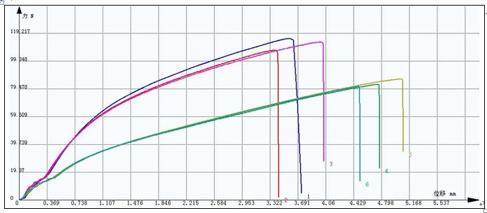 備  注:試樣1~3為普通厚紙板,試樣4~6為鍍鋅紙板。要求求取最大負荷(Fmax)、斷裂伸長率